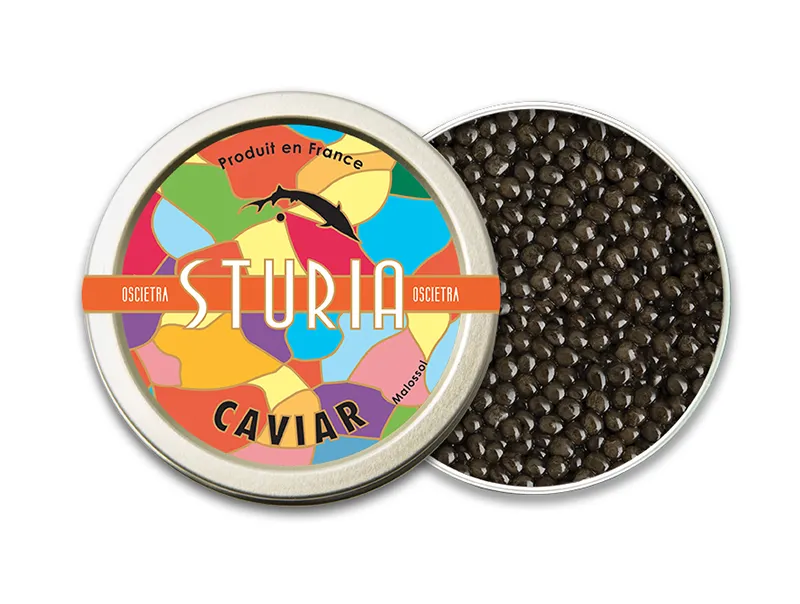 Caviar Osciètra ( beurre, noix, avocat, grains brillants aux reflets vert doré )